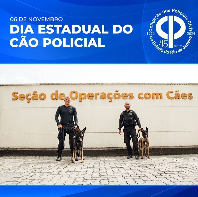 A COLPOL-RJ presta uma homenagem especial a todos os Policiais de Quatro Patas, companheiros leais que, com coragem e dedicação, enfrentam diariamente os desafios do serviço. Esses heróis silenciosos colocam suas vidas em risco para garantir a segurança de todos, mostrando um compromisso exemplar com suas missões. Em inúmeras operações, eles estão lado a lado com seus parceiros humanos, realizando um trabalho essencial que exige bravura e um coração incansável. Nossa mais sincera gratidão a esses valentes companheiros, que merecem nosso respeito e reconhecimento pelo papel fundamental que desempenham na segurança pública.