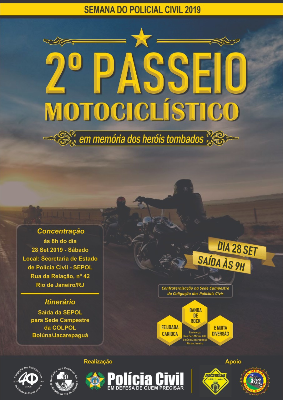 A 2° edição do “Passeio Motociclístico em Memória dos Heróis Tombados” vem para comemorar o Dia do Policial Civil que celebra-se dia 29 de setembro.