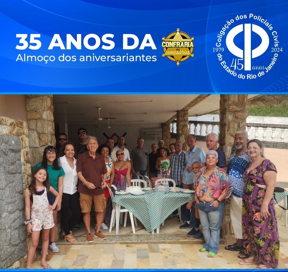 COLPOL-RJ, esteve presente na comemoração dos 35 anos da Confraria dos Comissários RJ. O almoço, realizado no dia 26 de outubro, na Sede Campestre da COLPOL-RJ, foi especial graças a participação de cada um, celebrando juntos esta história de companheirismo e dedicação. Que venham muitos anos mais!