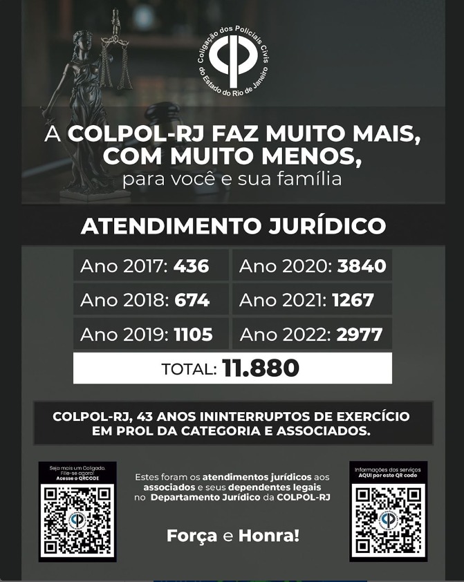 Veja os números de ATENDIMENTO JURÍDICO, realizados pela COLPOL-RJ.