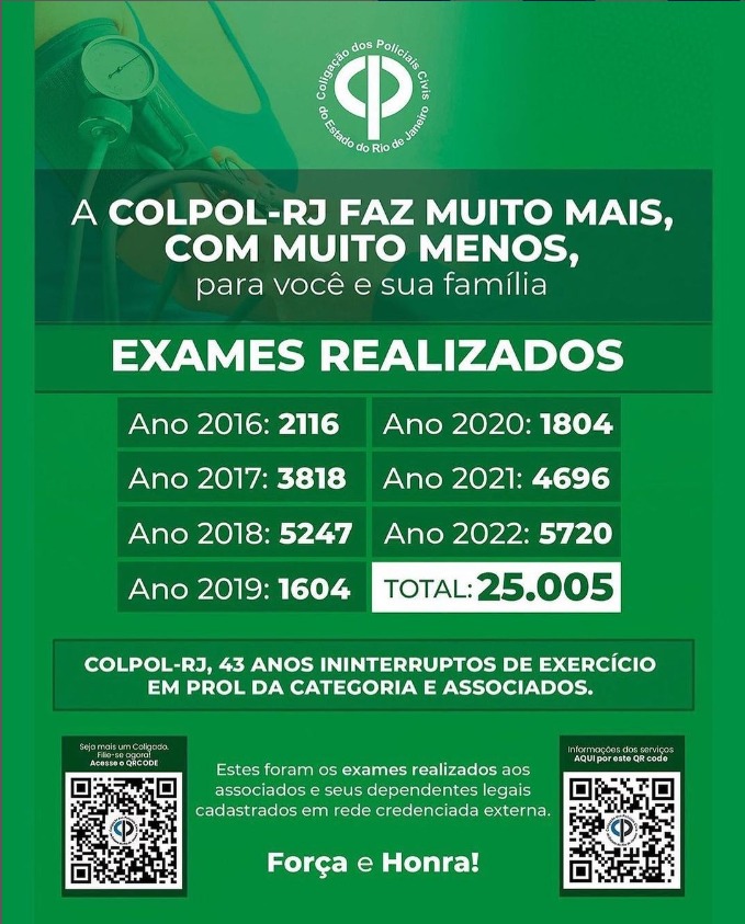 Veja os números de EXAMES, realizados pela COLPOL-RJ.