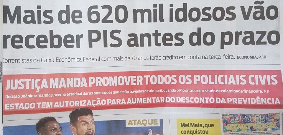 Matéria de capa do jornal O DIA, edição deste feriado (12/10/2017), informa sobre a histórica decisão liminar em 2a instância, em Ação Civil Pública promovida pelo corpo jurídico próprio da parceria do SINDPOL e COLPOL, onde a 14a Câmara Cível do TJRJ, por unanimidade, determinou a promoção de TODOS os Policiais Civis que preenchem os requisitos previstos na legislação. O acórdão será publicado e o Estado intimado a cumprir imediatamente a decisão judicial.