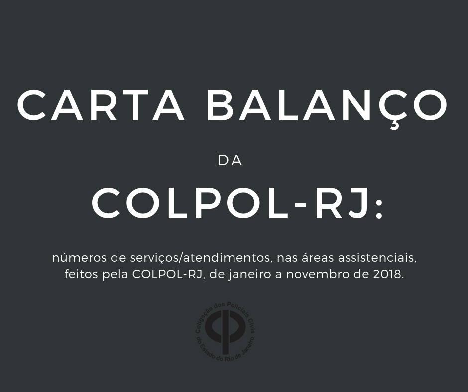 Carta Balanço da COLPOL: atendimentos nas áreas assistenciais feitos até novembro de 2018. Confira os números! Como sempre, prezando pela transparência, a COLPOL-RJ encerra o ano fazendo questão de publicizar seus Leia Mais >>