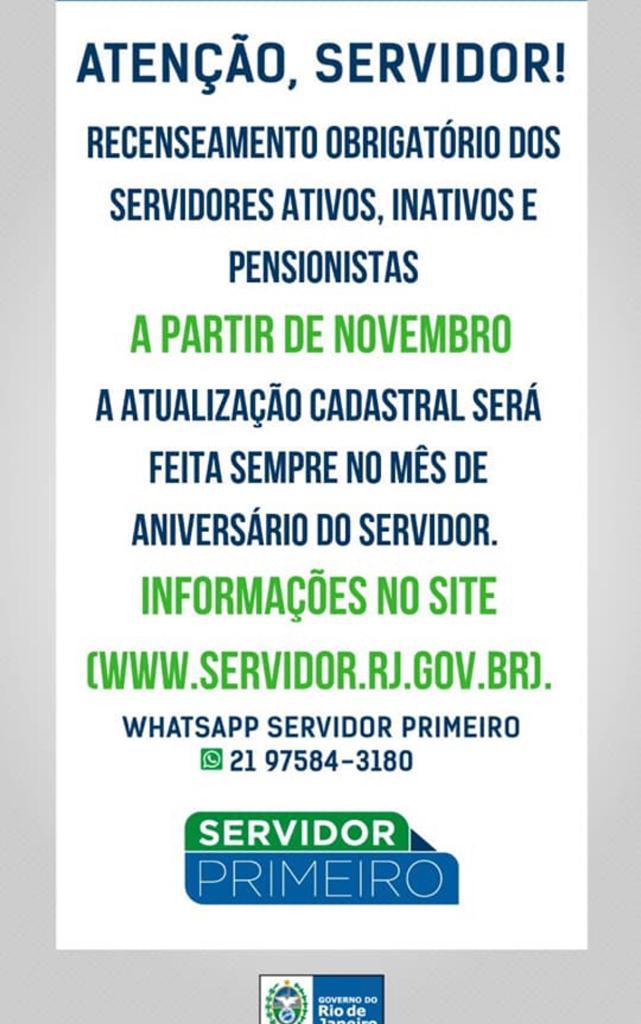 “SERVIDOR PRIMEIRO” Campanha do Governo do Estado pra informar sobre o Recenseamento, que começa hoje:
