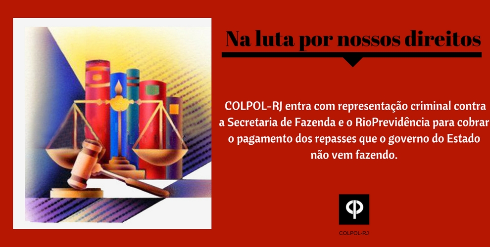 COLPOL entra com representação criminal contra a Secretaria de Fazenda e o RioPrevidência Nesta quinta-feira, 20/04, a Coligação dos Policiais Civis do Estado do Rio de Janeiro (COLPOL-RJ) Leia Mais >>