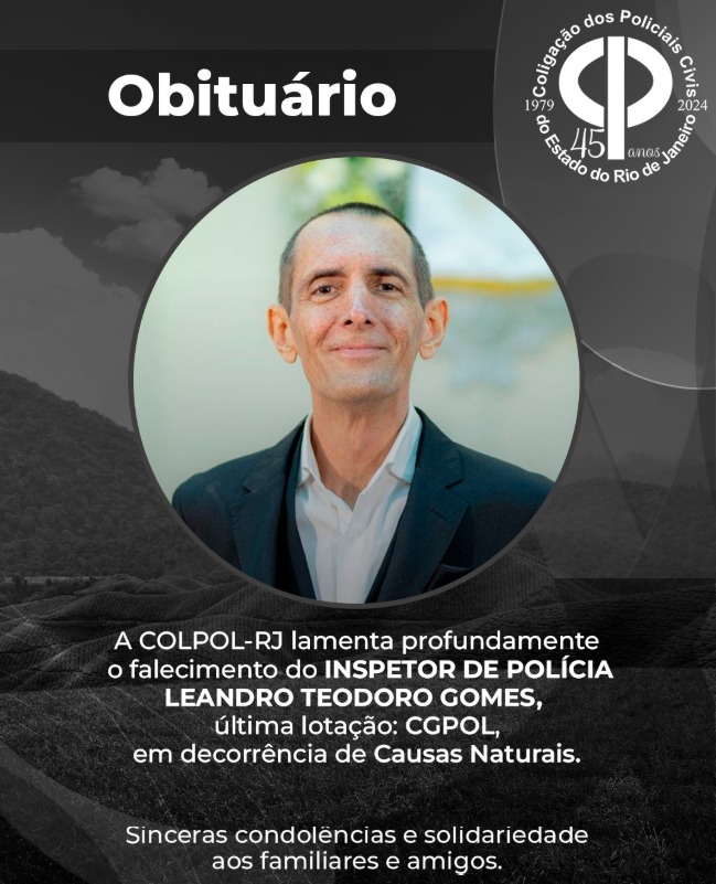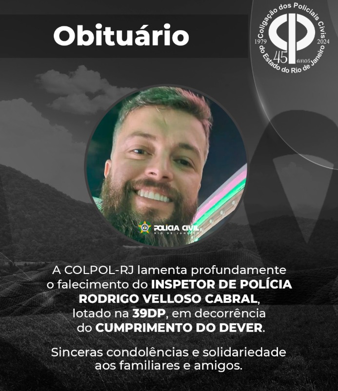 A COLPOL-RJ manifesta seu mais profundo pesar pelo falecimento do OFICIAL DE POLÍCIA CIVIL RODRIGO