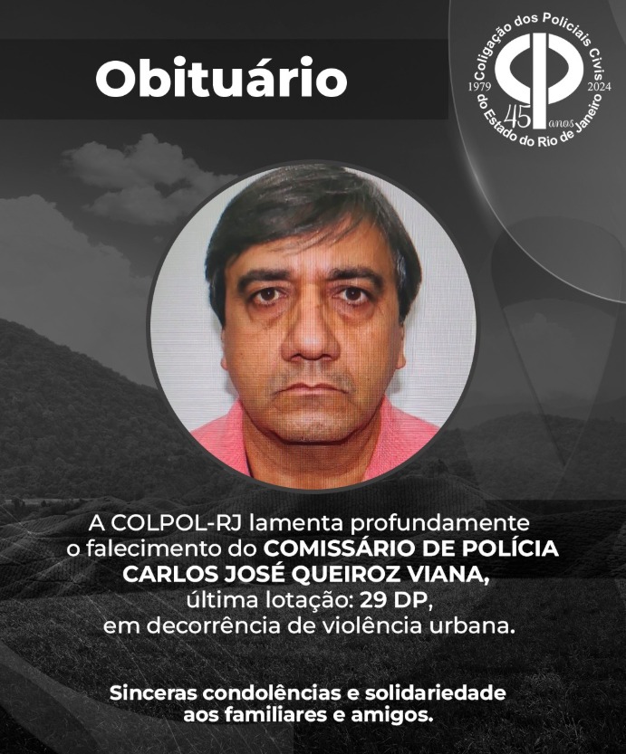 A COLPOL-RJ lamenta profundamente o falecimento do COMISSÁRIO DE POLÍCIA CARLOS JOSÉ QUEIROZ VIANA, última
