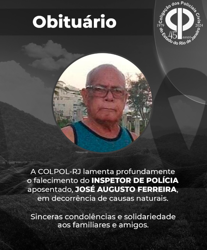 A COLPOL-RJ lamenta profundamente o falecimento do INSPETOR DE POLÍCIA APOSENTADO JOSÉ AUGUSTO FERREIRA, em
