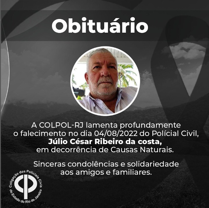 A COLPOL-RJ lamenta profundamente o Falecimento no dia 04/08/2022 do Policial Civil, Júlio César Ribeiro