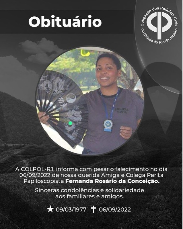 A COLPOL-RJ, informa com pesar o falecimento da Inspetora de Polícia, VANESSA AMORIM SILVA, última