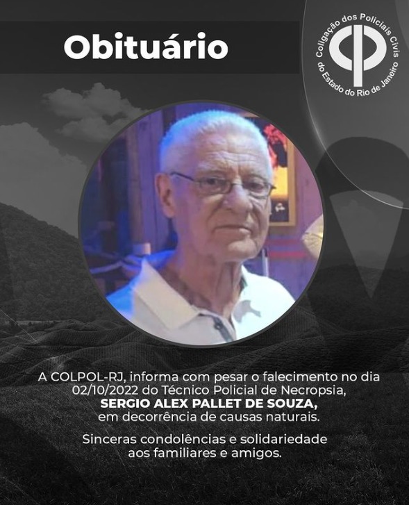 A COLPOL-RJ, informa com pesar o falecimento no dia 02/10/2022 do Técnico Policial de Necropsia,