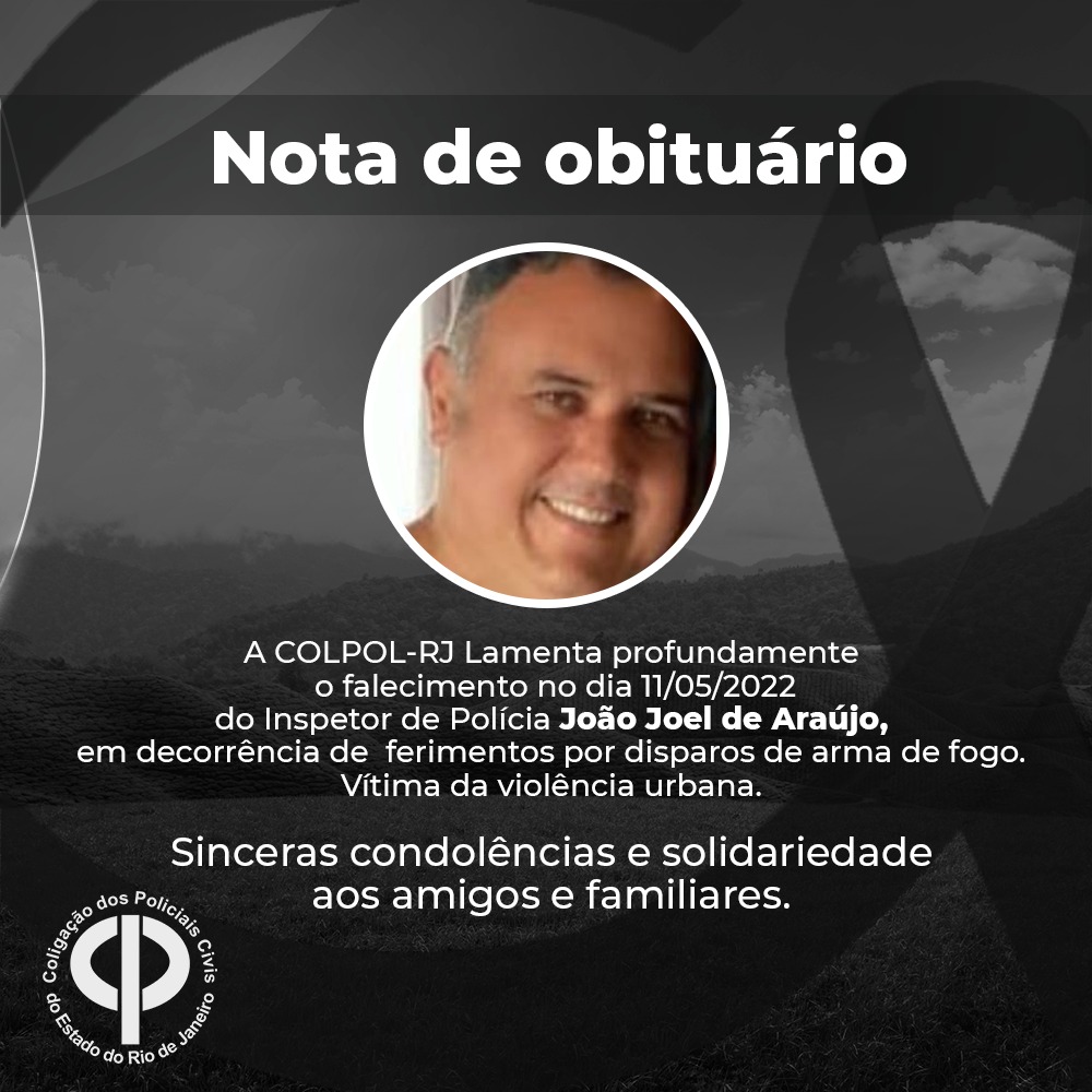 A COLPOL-RJ lamenta profundamente o falecimento no dia 11/05/2022 do Inspetor de Polícia João Joel