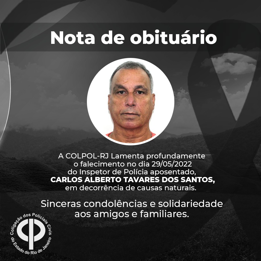 A COLPOL-RJ lamenta profundamente o falecimento no dia 29/05/2022