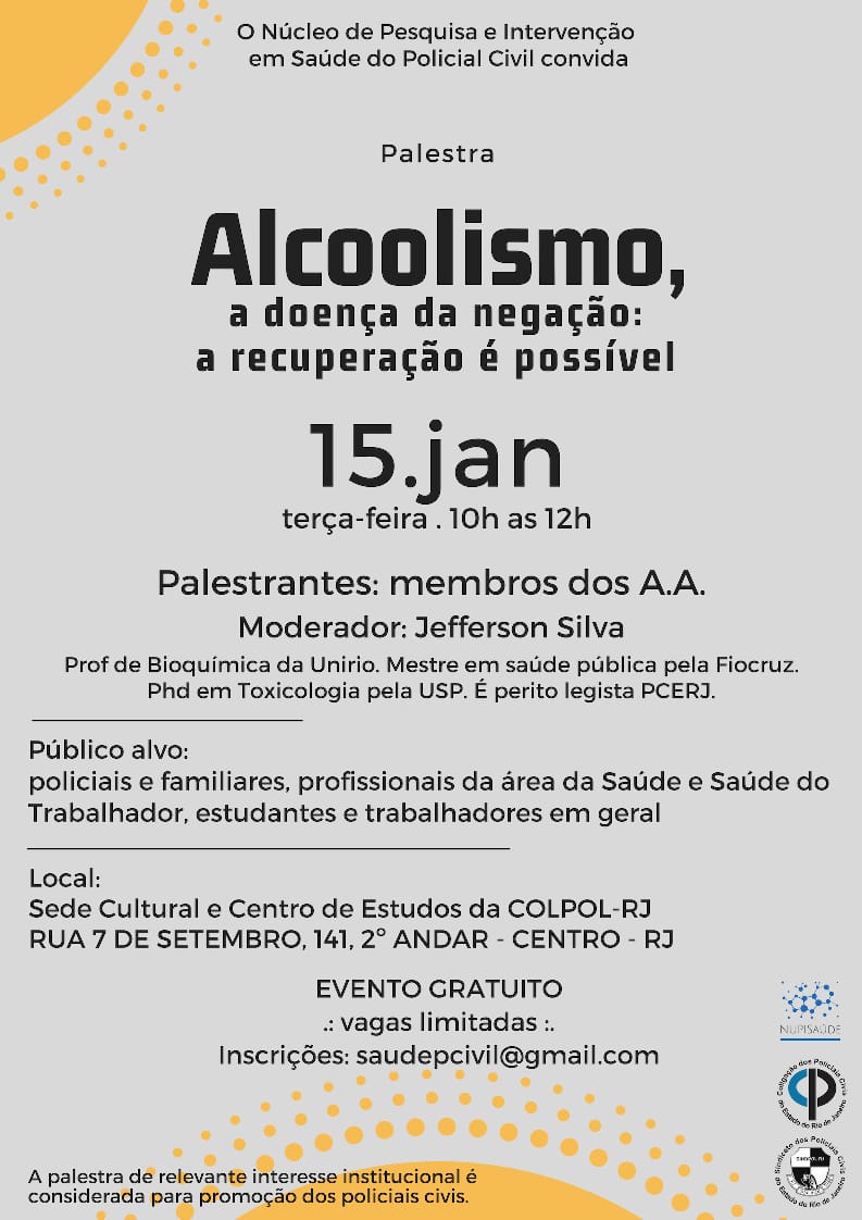 O Núcleo de Pesquisa e Intervenção em Saúde do Policial Civil (NuPISaúde) da COLPOL-RJ/SINDPOL-RJ acaba
