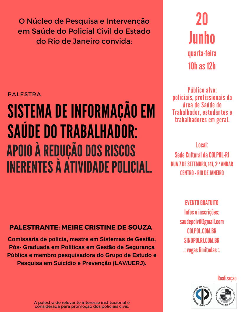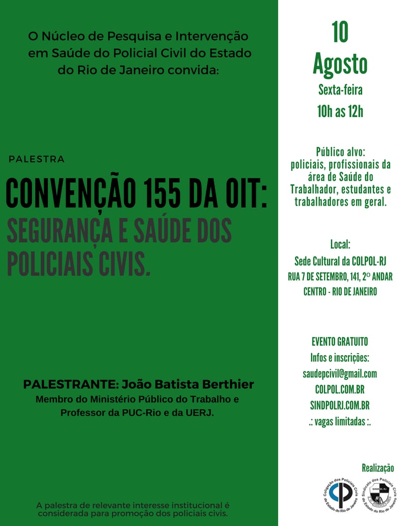 COLPOL-RJ e SINDPOL-RJ sediam a palestra “Convenção 155 da OIT: segurança e saúde dos policiais civis”