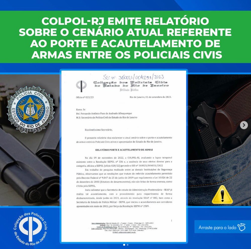 COLPOL-RJ EMITE RELATÓRIO SOBRE O CENÁRIO ATUAL REFERENTE AO PORTE E ACAUTELAMENTO DE ARMAS ENTRE OS POLICIAIS CIVIS.
