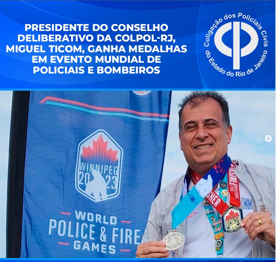 O Comissário Miguel Ticom, atual Presidente do Conselho Deliberativo da COLPOL-RJ, foi destaque internacional do World Police and Fire Games – WPFG (Jogos Mundiais de Policiais e Bombeiros), um encontro bienal de atletismo destinado aos profissionais de polícia e bombeiros de todo o planeta.