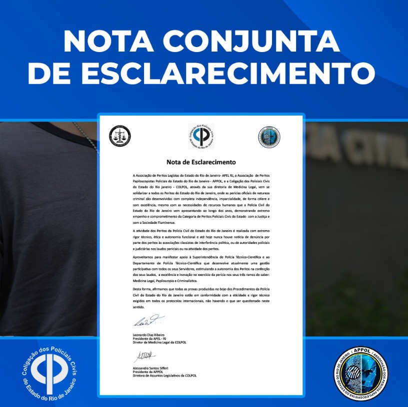 Confira a Nota conjunta de Esclarecimento emitida pela COLPOL, APPOL-RJ e APEL-RJ:
