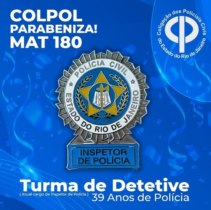 A COLPOL, parabeniza todos os Detetives (Inspetores de Polícia) pela comemoração de 39 anos de polícia e reitera seu total apoio aos colegas da categoria.