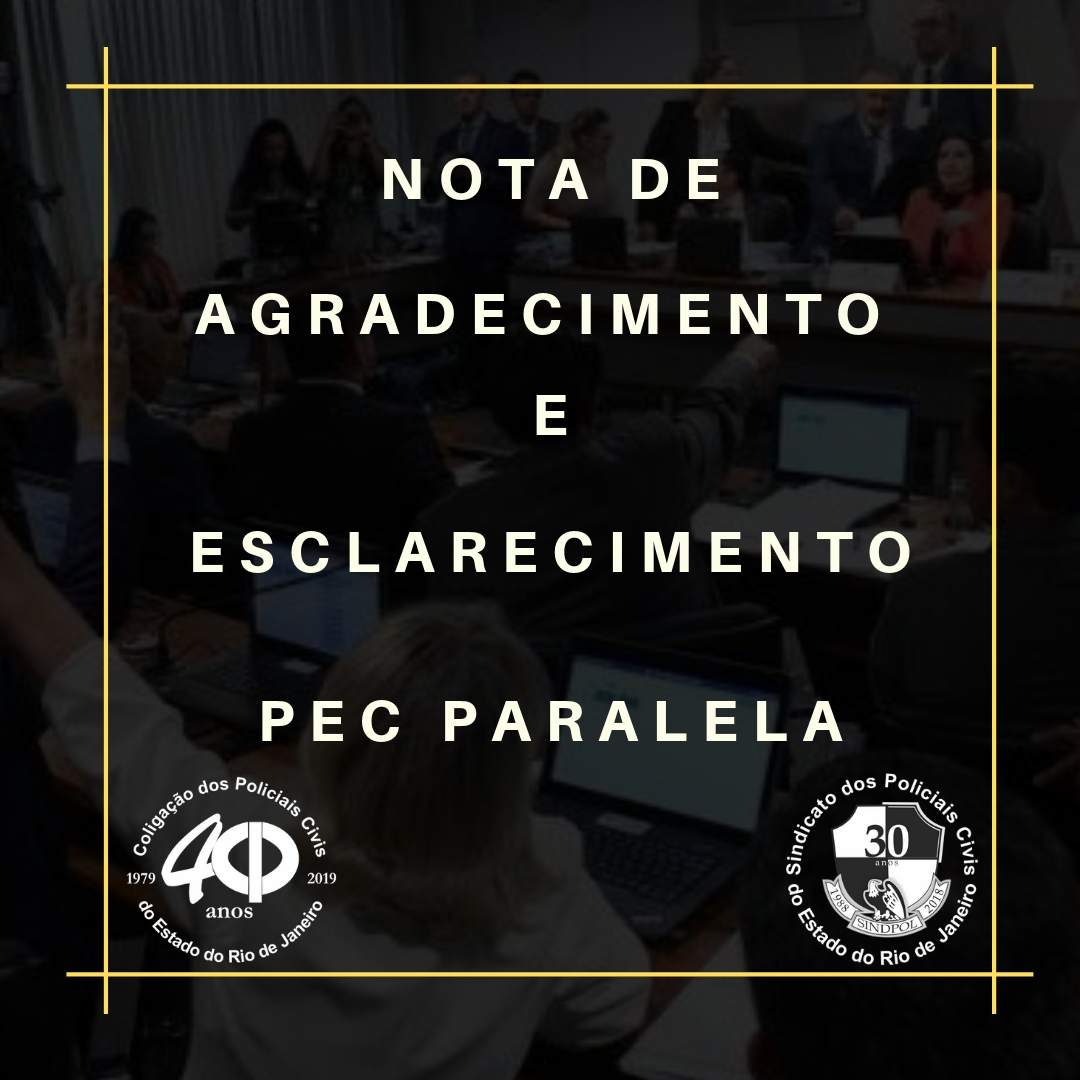 A Coligação dos Policias Civis do Estado do Rio de Janeiro (COLPOL-RJ) e o Sindicato dos Policiais Civis do Estado do Rio de Janeiro (SINDPOL-RJ), vem por meio desta agradecer a rápida ação do Deputado Federal Antônio Carlos Nicoletti, o qual é Policial Rodoviário Federal e acompanhou todo o procedimento de debates da votação da PEC paralela, ontem, quinta- feira (5), e de imediato entrou em contato com a CCJ do Senado para informar o erro ocorrido no texto da Emenda 409, sobre integralidade e paridade dos Policiais Civis, apresentada pelo Senador Marcos do Val (ES), acolhida na íntegra para todos os Policiais Civis que estiverem na instituição até a publicação da PEC, mas lançada equivocadamente com lapso temporal até 2003, após o encerramento dos trabalhos.