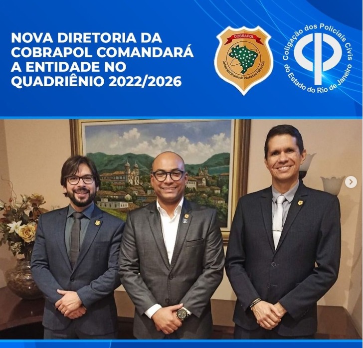 A COLPOL-RJ, gostaria de parabenizar a nova diretoria da COBRAPOL, eleita no XXI Congresso Nacional da COBRAPOL no dia 26 de maio 2022. Eles serão responsáveis por comandar a entidade no quadriêndio 2022/2026.