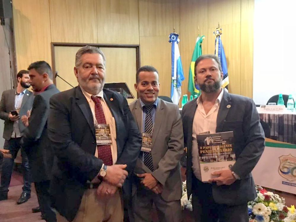 O presidente da COLPOL-RJ e vice-presidente do SINDPOL-RJ, Fábio Neira, em companhia do advogado e assessor do SINDPOL/COLPOL, Carlos Paiva, participaram, nesta quinta-feira (05/10), do 1° seminário nacional dos agentes penitenciários, realizado na sala Mário Tavares, anexo do Teatro Municipal do Rio de Janeiro. Na foto, os representantes das entidades classistas da PCERJ, ao lado do presidente do sindicato dos servidores do sistema penitenciário do Estado do Rio de Janeiro (SIND-SISTEMA), Gutembergue de Oliveira.
