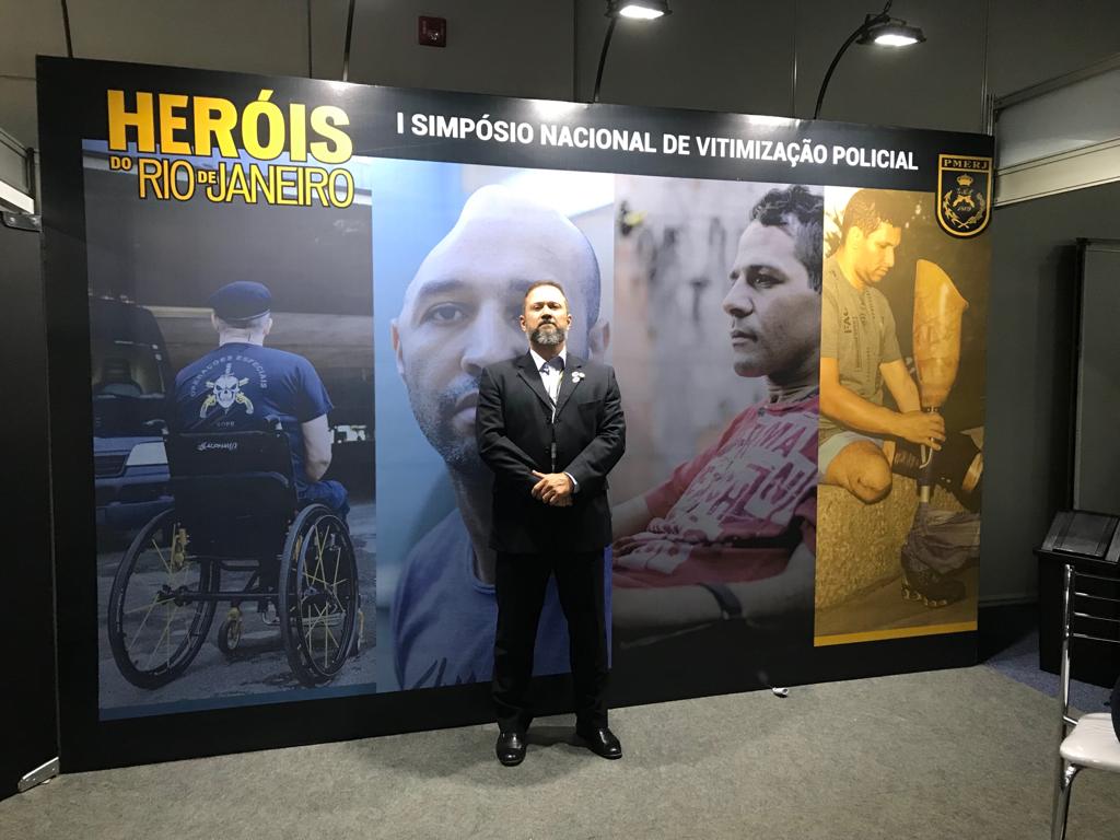 O presidente da COLPOL-RJ, Fábio Neira, participou nesta 2ª feira, 13/05, da abertura do I Simpósio Nacional de Vitimização Policial, realizado pela PMERJ, no Centro de Convenções Sul América, no Centro do Rio.