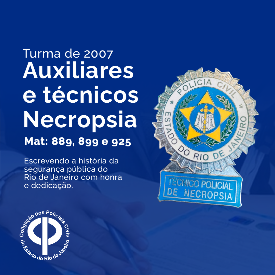 Nossos parabéns a turma de Auxiliares e Técnicos Necropsia (matrículas: 889, 899 e 925) do Rio de Janeiro pelos serviços dedicados à segurança pública!